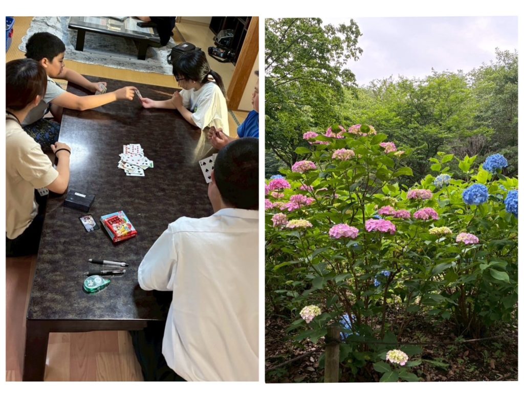 室内でカードゲームを楽しんだり、夕方涼しい時間に外遊びしたりなど工夫して活動しています。